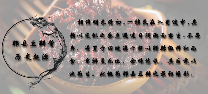郫縣豆瓣,成都市郫都區(qū)(舊稱郫縣)特產(chǎn),中國地理標(biāo)志產(chǎn)品。是中國首屈一指調(diào)味料之一。它在選材與工藝上Du樹一幟,與眾不同。香味醇厚卻未加一點香料,色澤油潤卻未加任何油脂,全靠精細(xì)的加工技術(shù)和原料的優(yōu)良而達(dá)到色、香、味俱佳的標(biāo)準(zhǔn),具有辣味重、鮮紅油潤、辣椒塊大、回味香甜的特點,是川味食譜中常用的調(diào)味佳品,有“川菜之魂”之稱。其制作技藝列第二批國家ji非物質(zhì)文化遺產(chǎn)名錄。