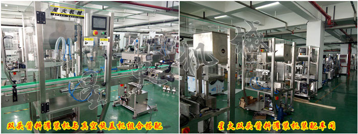 郫縣豆瓣自動灌裝機是星火機械自主研發(fā)、擁有核心技術(shù),針對郫縣豆瓣醬、紅油豆瓣醬等醬料灌裝而研制,下圖為設(shè)備裝配現(xiàn)場,可配置真空旋蓋機、自動貼標(biāo)機、自動開箱機、自動打包機等,實現(xiàn)豆瓣醬的自動灌裝、旋蓋、貼標(biāo)、自動裝箱等一系列工序,大大節(jié)省人力,提高工作效率。