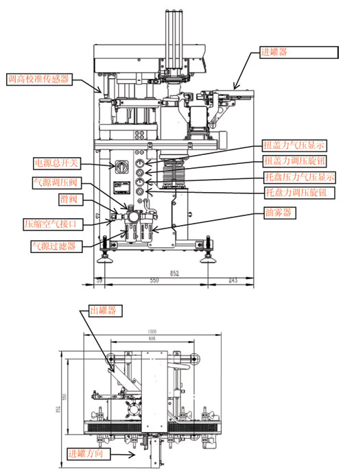 這是一款以電氣程序控制和氣動驅動實現(xiàn)運轉為主的設備。和傳統(tǒng)機械傳動設備不同的是,采用氣缸作為主要的動力原件,各動作原件通過編程控制器協(xié)調動作,應用數(shù)目較多的傳感器檢測瓶子、蓋子和設備上的動作部件。采用氣動和電氣編程控制取代機械傳動裝置帶來的好處是:設備可以很干凈,避免潤滑油脂對生產(chǎn)環(huán)境和產(chǎn)品的影響,很重要的是,可以對產(chǎn)品必須達到的指標參數(shù)進行監(jiān)控和靈活調整,如真空度、擰蓋力矩等;谠撛O備的特點,設備的管理人員只要掌握機器的工作程序流程、每個傳感器信號在機器程序中的作用,就可以輕松實現(xiàn)對設備的維護調整和故障排除。