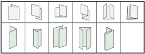 原理及特點(diǎn): DZ系列自動(dòng)折紙機(jī)設(shè)計(jì)先進(jìn)、制造精良、可用于設(shè)計(jì)范圍內(nèi)各種不同尺寸和厚薄紙張的折疊、可折成圖例所示六種式樣。調(diào)整簡(jiǎn)便,送紙流暢,無級(jí)調(diào)速,輕巧高效。