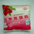 適用:本包裝件適用于醬油、醋、果汁、牛奶等液體,采用0.08mm聚乙烯薄膜,其成型、制袋、定量灌裝、油墨印字、封口切斷等過(guò)程全部自動(dòng)進(jìn)行,薄膜在包裝前進(jìn)行紫外線消毒,符合食品衛(wèi)生的要求。