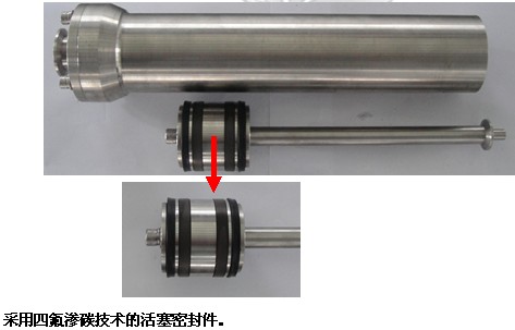 8、采用新四氟滲碳技術的活塞密封件,提高了活塞密封件的抗磨性能和對物料的適用性,有效解決了活塞式灌裝機對乳油、水溶性懸浮劑、高粘稠物料不能通用的問題。