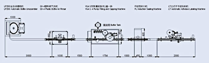 1、LP20O全自動理瓶(GP62)圓盤供瓶機(jī) 2、QX-4塑料瓶的凈化氣洗瓶機(jī) 3、YG4/1四泵液體灌裝旋(軋)蓋-體機(jī) 4、FL電磁感應(yīng)鋁箔封口機(jī) 5、LT不干膠貼標(biāo)機(jī)